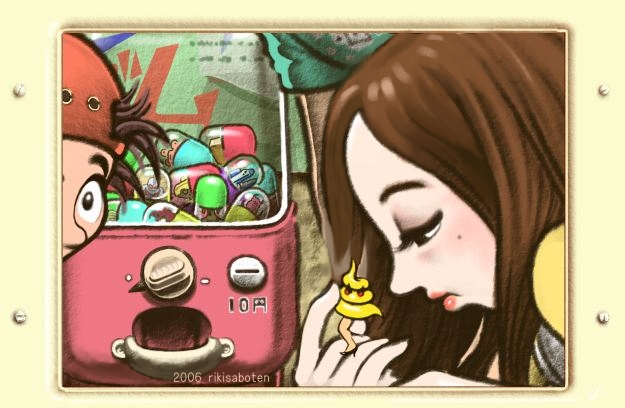 「先生、ガチャポン面白いって」 家の方向が同じ生徒同士、まとめて家庭訪問をやってた。 家までゾロゾロ先生を案内していくのだが、、、 初夏の頃で、センセがアイスおごってくれたのを憶えている。 その駄菓子屋は誰かのなじみの店で、そいつはガチャポンを先生に勧めていた。 当時のガチャは10円でしたんで、、、意味の判らん中身も多かった。 . |