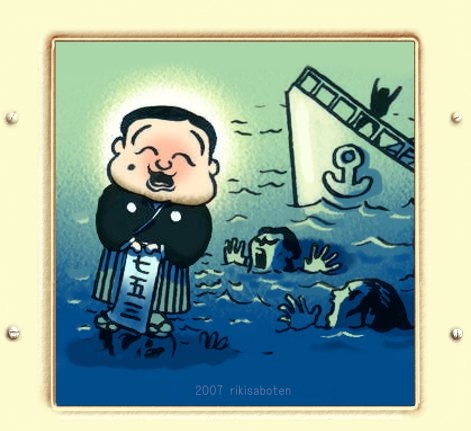 | 「お先真っ暗」より〜不吉坊や、七五三衣装でオメカシに照れるの図 |
