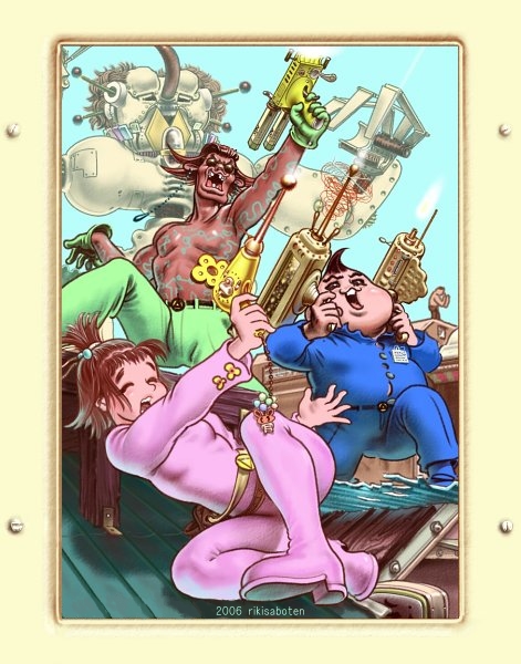 | 「地l球はオイラにまかせとけ」 A 隣町の工場の娘 暴走したロボに愛犬を踏まれる。 娘はそれをサイボーグに改造。 報復戦はここから始まる。 |