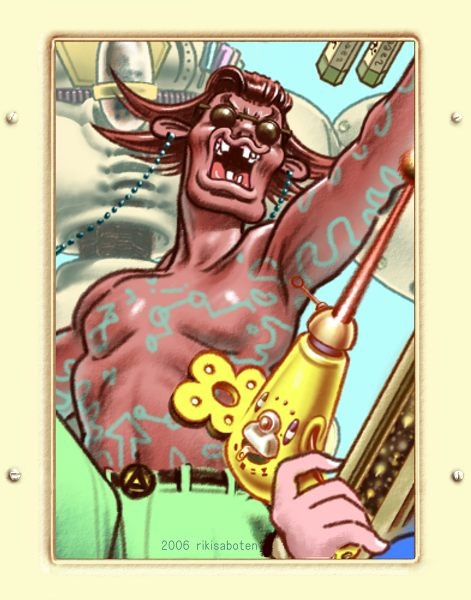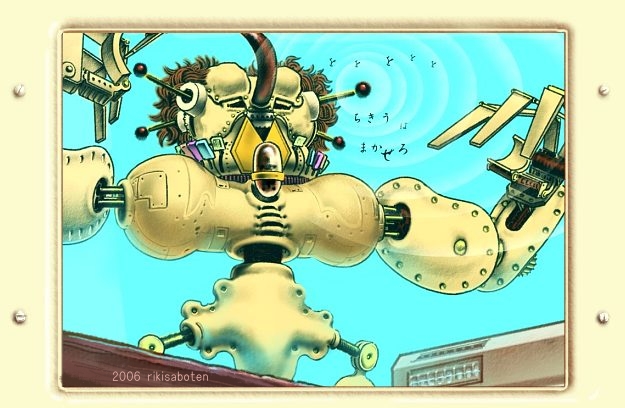 | 「地l球はオイラにまかせとけ」 @ 隣町の工場同士がロボット開発に関わっていく内、戦争状態に入る。 漫画の設定書みたいになりました。 |