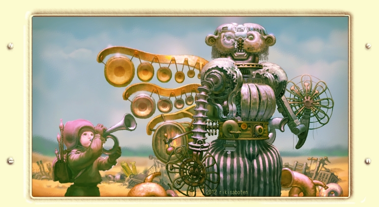 これからどうしようかな、、、 きみ音楽すきかい? ぼくは演奏できるロボットなんだよ 一曲やってみようか きみと演奏旅行なんてどうかねぇ |