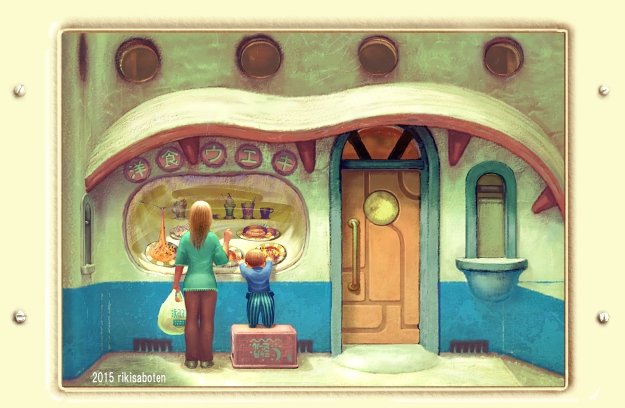 食品見本の窓は埃まみれ。