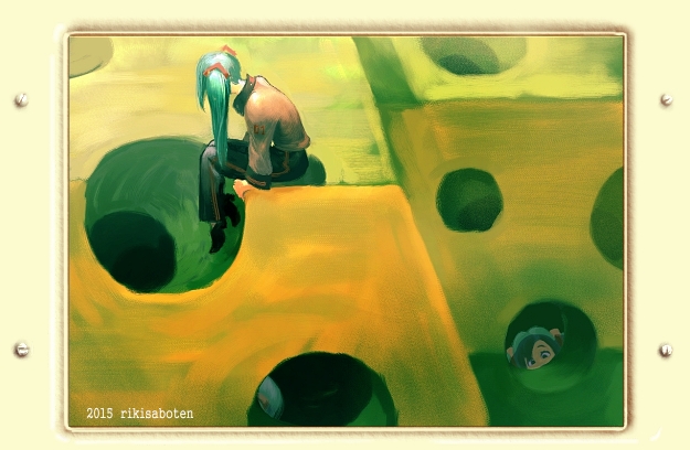 ▲公園で異次元の穴をのぞくミク