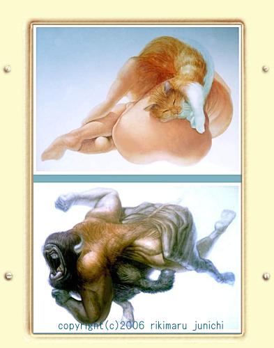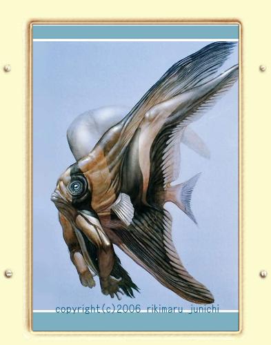 実在生物と人間の合成だけに焦点を絞った連作。 (透明水彩・ガッシュ)